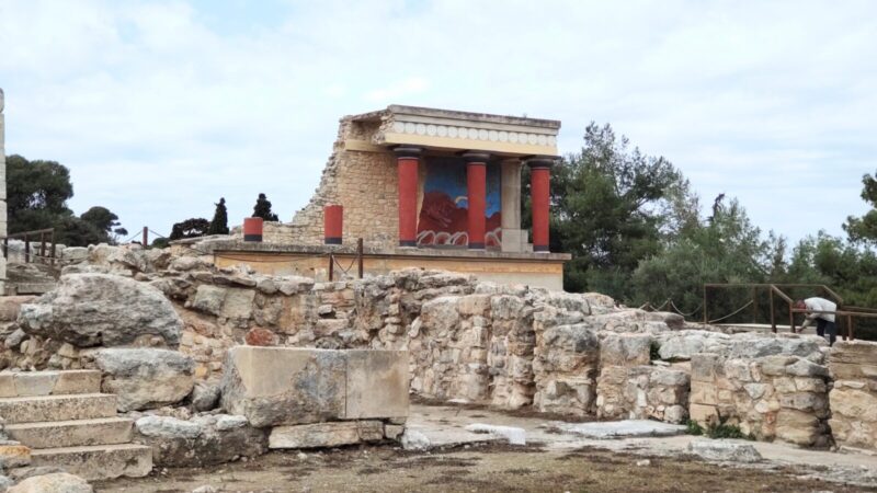 クレタ島の中心都市イラクリオンの郊外にあるクノッソス宮殿は、かつてミノア文明の政治と宗教の中心地として栄えた壮大な遺跡です。