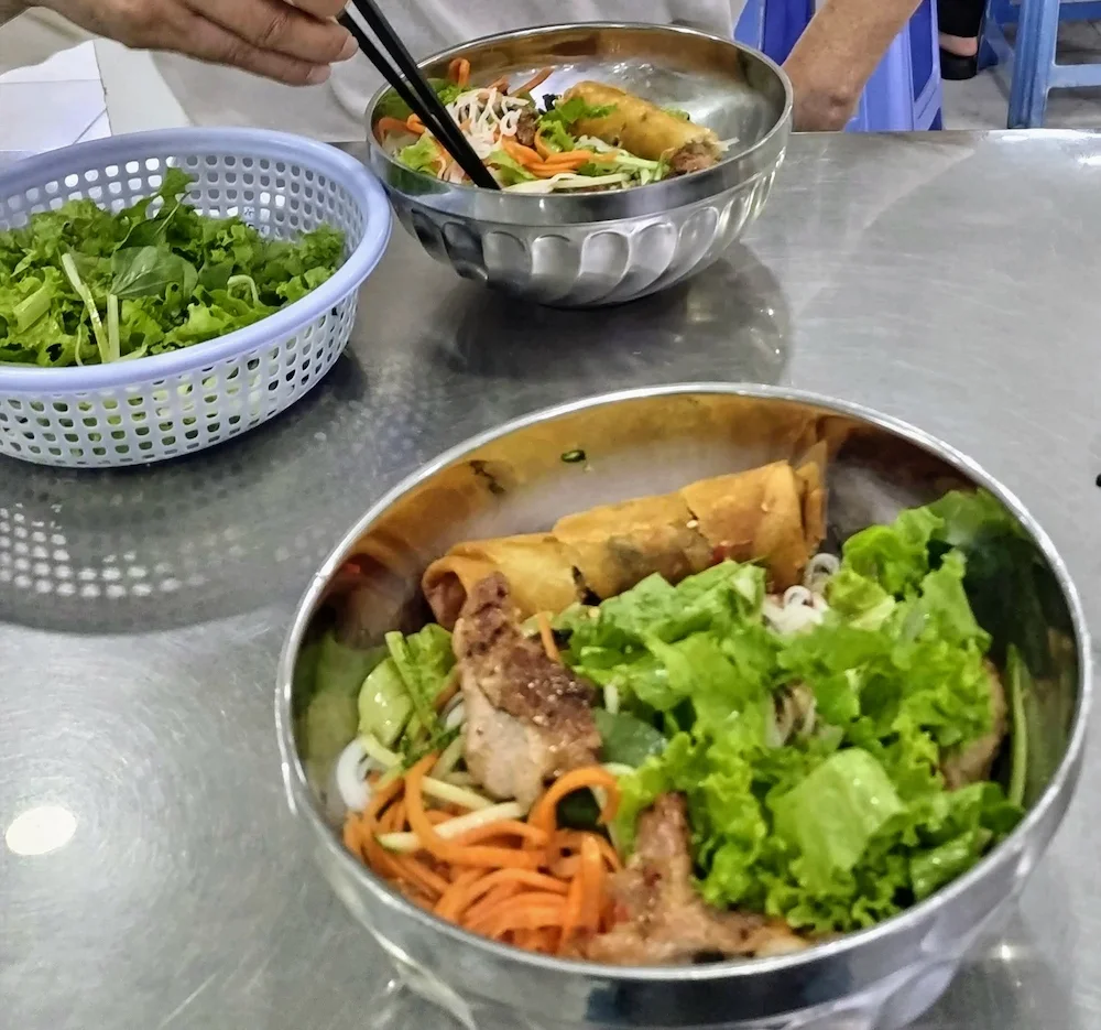 全て入った(豚肉+肉団子+春巻き)まぜ麺 33000ベトナムドン(当時のレートで196円)