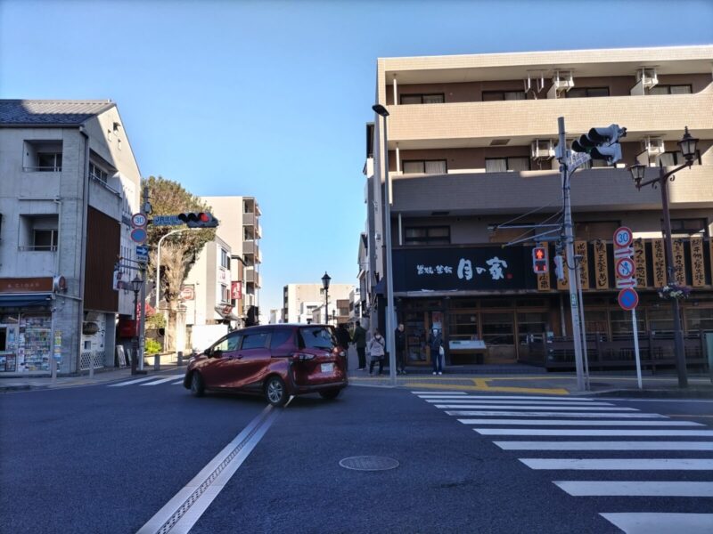 JR成田駅と京成成田駅の間にある、この「JR成田駅」と書かれた信号の奥が表参道。
