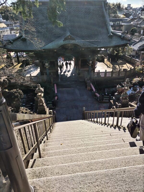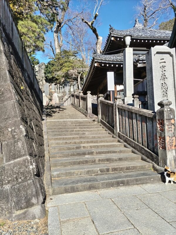 一般的な道順は、この急な階段を上って仁王門をくぐります。