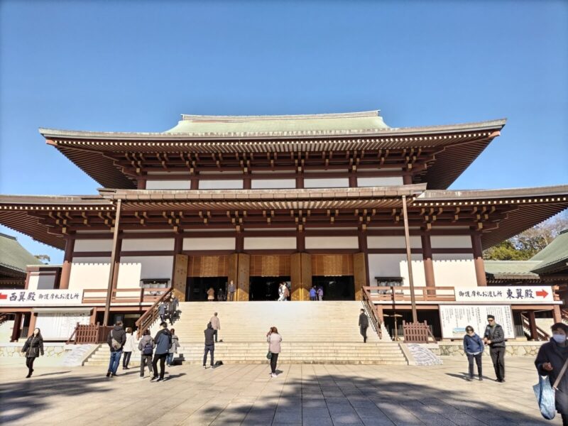 正面の仁王門をくぐると、重厚な大本堂があり、現在の建物は1968年に建立されたものです。