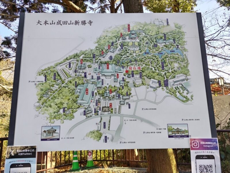 成田山新勝寺はとても広く、奥に拡がる成田山公園は池や滝、季節の花々に彩られ、参拝後の散策にも適しています。