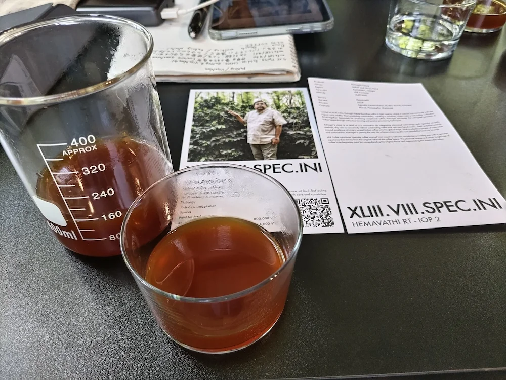 頼んだコーヒーはビーカーに入って出てきましたよ😮